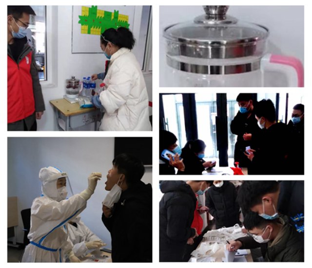 学校建筑工程系学生工作副主任王丽萍带着工作人员在现场忙忙碌碌。她发现做核酸检测出来的师生有的感觉嗓子不适,甚至干呕现象,立刻派人取来一把透明的养生壶,还带来矿泉水、冰糖和大枣,现场熬制暖心的“养生汤”提供贴心服务。