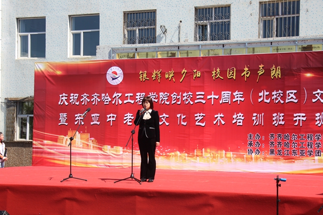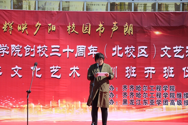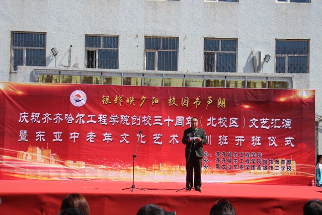 “银辉映夕阳,校园书声朗”,5月9日上午,继续教育部、东亚技职校在北校区举办庆祝开云kaiyun官方网站创校三十年文艺汇演暨东亚中老年文化艺术培训班开班仪式。继续教育部副主任孙娱芯,东亚技职校校长郭磊,五龙街道新宫社区党支部书记尹钰、市爱心长跑协会名誉会长姬永发、会长王志芳,市文联守正文艺人协会会长李乃勋及东亚技职校师生、中老年培训班300余人参加活动。