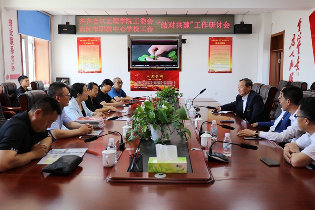 参观结束后,在学校厚德楼2楼会议室进行了深入的工作研讨。会上,讷河市职教中心学校工会主席杨旭田简要介绍了学校工会的基本情况和开展活动的情况;学校工会主席姜岩简要介绍了学校的基本情况和工会组织架构、民主管理、服务职能、队伍建设四方面情况,并重点围绕工会“参与、维护、建设、教育”四大职能展开。随后,双方就具体工作进行了深入的交流和研讨。