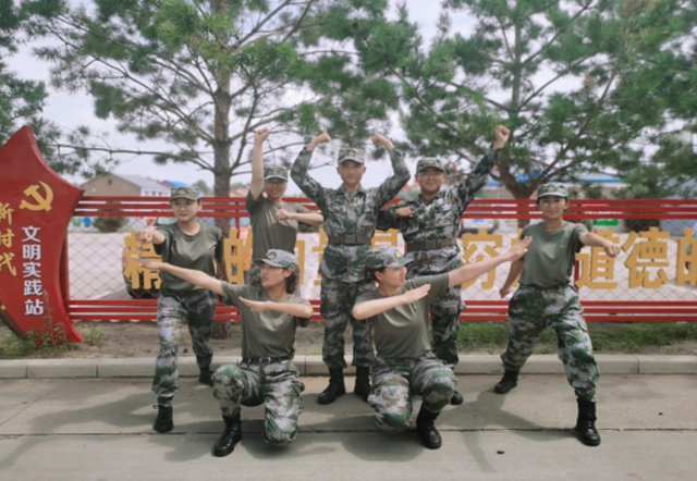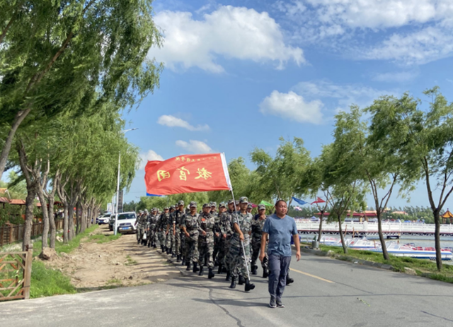 早上6点教官们从学出发,历经4小时到达目的地查罕诺,拉练途中,大家一路高唱军歌、呼喊口号,随行老师提醒学生注意安全行进。虽然同学们的汗水早已浸湿了衣衫,不少教官小腿酸痛,但他们一路上克服疲惫与疼痛,在行军途中始终保持高昂士气、饱满热情。到达目的地进行进行野炊,同学们参观风景,各班拍照留念,休息过后,下午2点30分教官团原路返回。