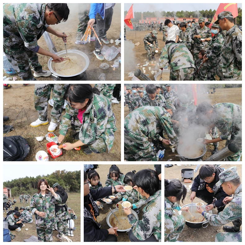 途中,同学们队伍整齐,气宇轩昂,步伐有力,鲜红旗帜迎风飘扬,一路高唱军歌。学长教官和老师不时提醒注意安全,加油鼓励,各级学长全程分路段协管交通安全。疲惫的汗水打湿额头,酸胀的小腿举步艰难,但学生们仍保持高昂士气和饱满热情,坚持走完全程。到达目的地后以营为单位进行野炊,铁锅炖小鸡,主食是面条,学生们快乐地享用自己动手带来的乐趣。野炊结束后又进行了拨河比赛。