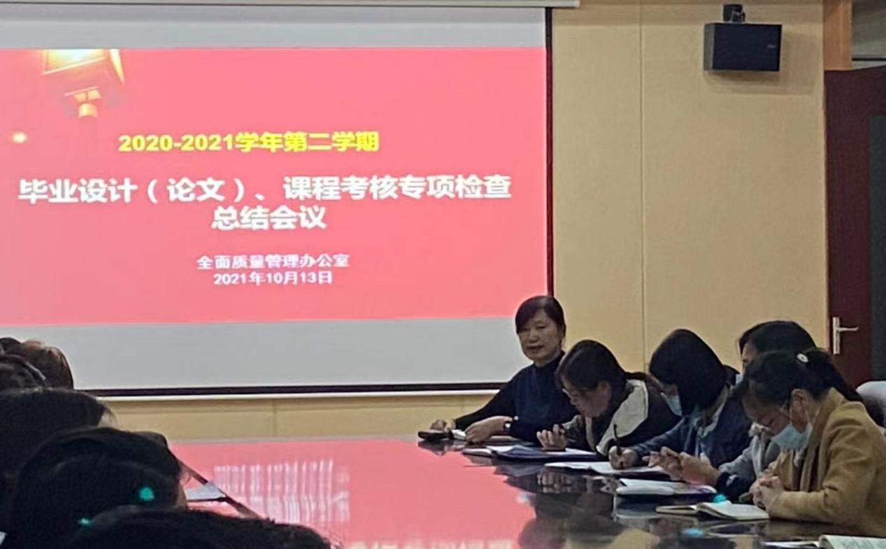 为进一步规范毕业设计(论文)、课程考核工作的过程管理,持续改进毕业设计(论文)、课程考核工作质量,全面质量管理办公室于1013日下午在图书馆603南会议室召开20202021学年第二学期课程考核、2021届本科毕业设计(论文)专项检查总结会。学校副院长蒋春艳出席,教务处与全质办相关干部、各系(部、中心)主任、教学工作副主任、专业负责人参会。全面质量管理办公室主任孟艳辉主持会议。