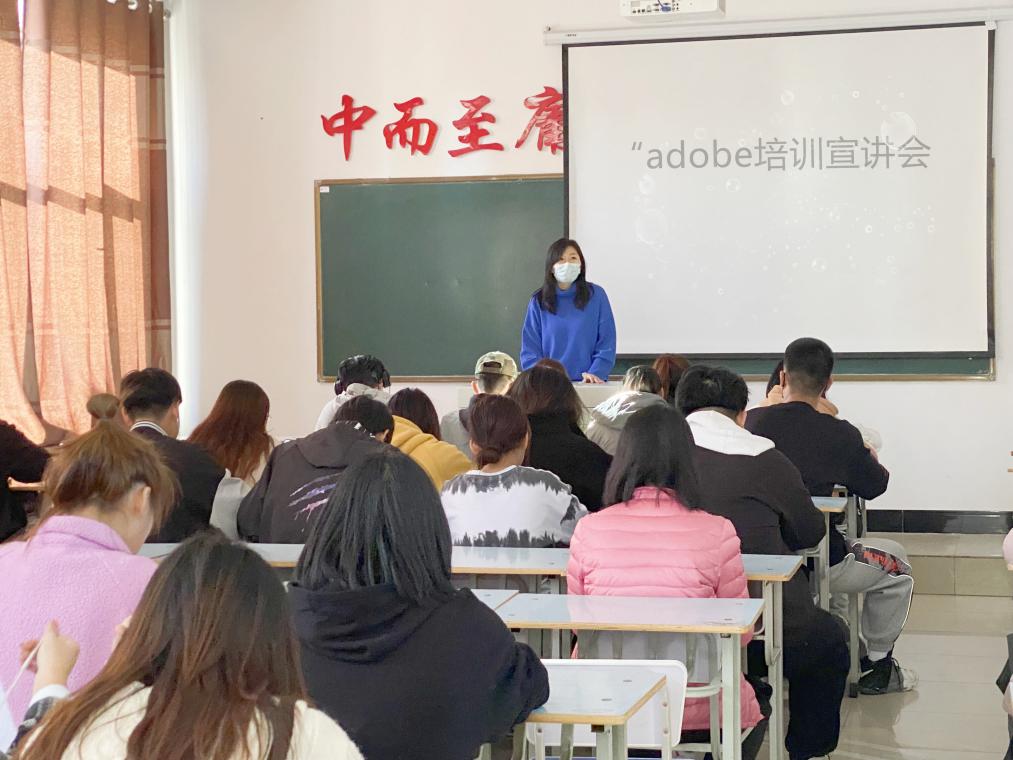 1022日下午,信息工程系视觉传达设计专业2018级、2020级的40余名学生,在一号教区1311教室,线上观看了线上“adobe培训宣讲会,宣讲会由专业教师任杰主持。培训会上,adobe培训机构的培训师系统讲解了adobe软件的专业架构模式,通过PPT及短视频的形式向大家展示了实际案例,详细讲解了视觉传达设计方面的专业知识和专业未来发展方向。通过线上案例分析,同学们将所学的理论知识和实践相结合,拓宽了专业视野,达到了培训目的。