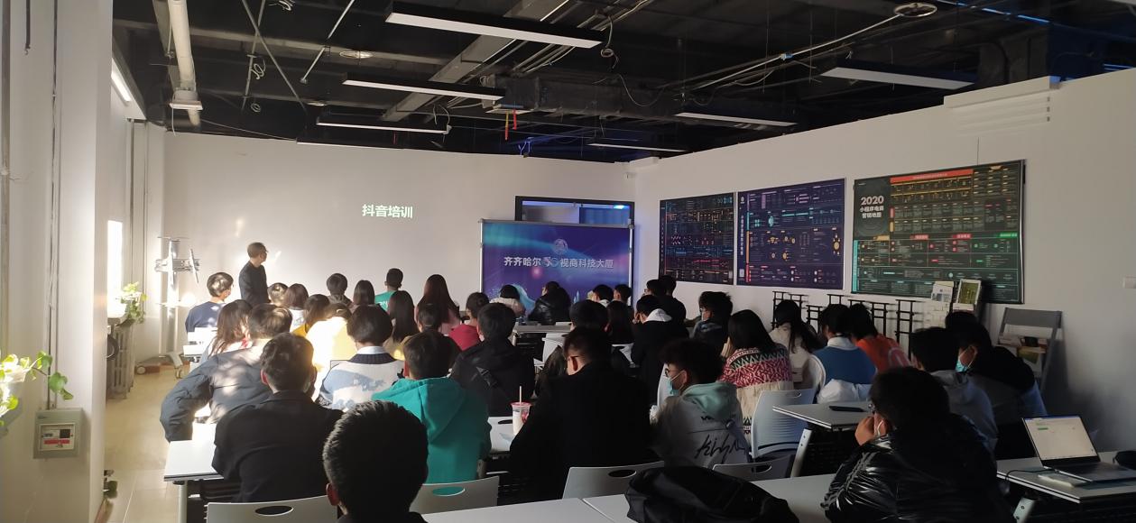 1024日下午,学校信息工程系视觉传达设计专业学生,在百花电子城举办了齐齐哈尔市抖音运营培训会。