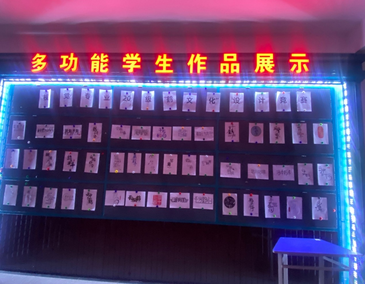 通过竞赛培养了学生们对字体设计这门课程的兴趣爱好,增强了学生动脑动手能力,丰富了学生的课余生活。作品的展出,也为校园增添了一道靓丽的风景线。