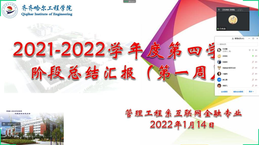 1月14日,学校管理工程系组织各个班级、专业召开了2021-2022学年度第四学期阶段总结汇报会,全体生涯导师、新入职辅导员参加,系学生工作副主任刘贤鹏主持。