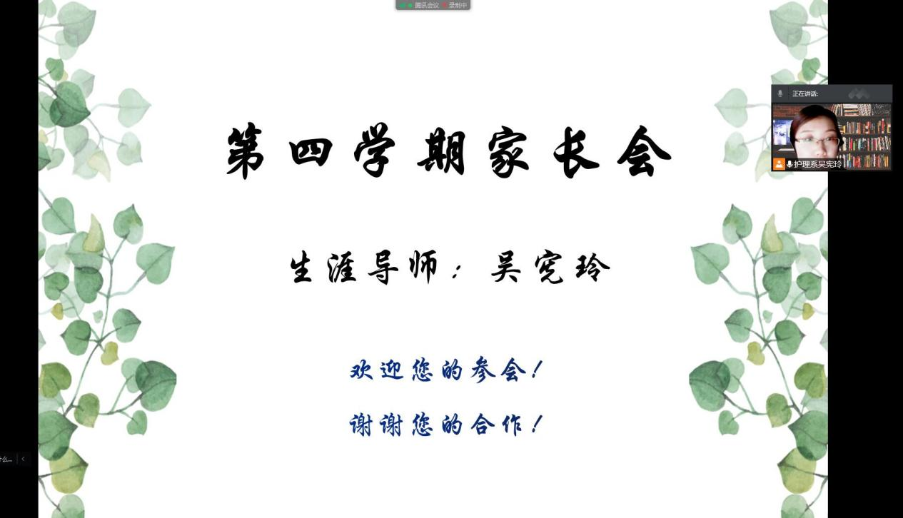 1月26下午吴宪玲老师在腾讯会议上召开第四学期线上家长会健管专业HLX225—233组全体同学的家长此次会议