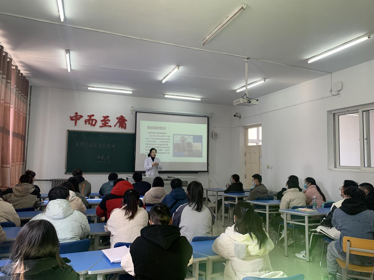 为进一步加强实验(训)室安全管理的规范性强化学生对实验(训)室的安全意识3月7日中午健康与护理系张晓波在一号教学区1215教室,为健康服务与管理专业、护理专业的班级干部进行实验室安全培训