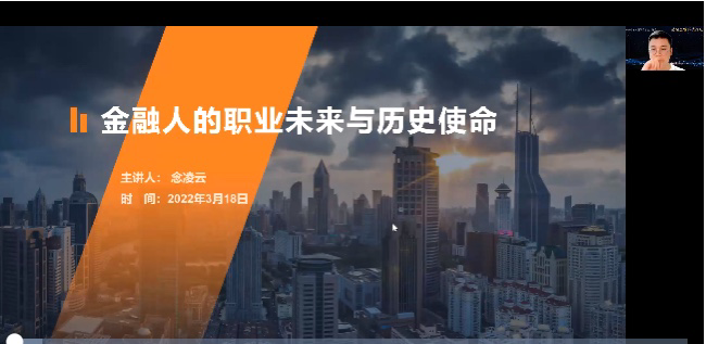 拥有7年投资研究的经验,曾获得云南省模拟黄金操盘大赛冠军的念凌云老师,以《金融人的职业未来与历史使命》为题开启了本次讲座。他从现阶段实际情况分析了金融业概况、金融行业的使命与未来以及职业金融人的要求。
