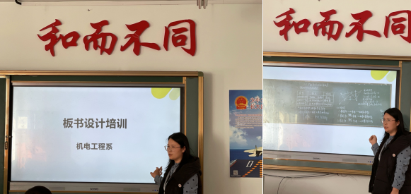 4月12日下午,机电系教学副主任甄彩霞在图书馆429教室对全体任课教师进行板书设计培训。