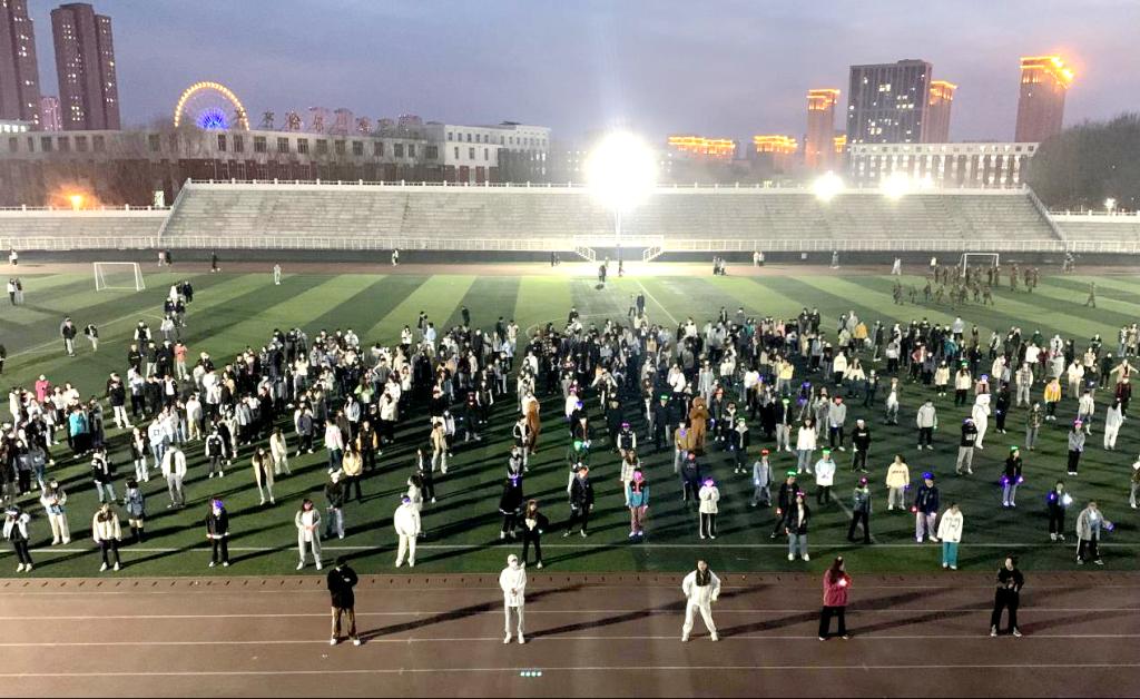 活动在一首欢快的《日不落》歌曲中拉开了帷幕。舞艺工坊的学生在前排,动作娴熟地领舞,他们身后,百余名学生分散站位,充满青春活力的身影遍布操场,吸引许多学生观看并加入广场舞大军之中。