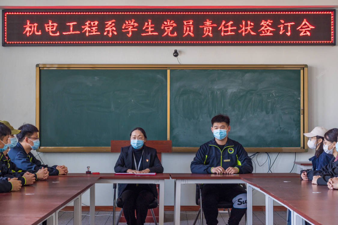 许炳楠同学宣读责任状签订内容后,各位党员逐一承诺签字,随后系党总支书记王丽萍加盖公章。