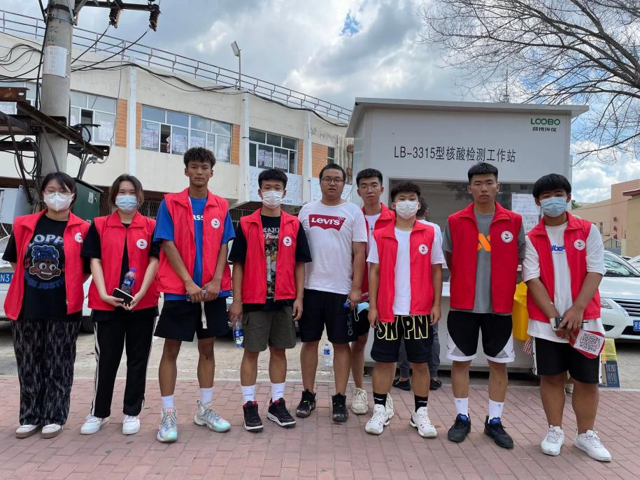7228点半,机电系团总支书记于海龙带领机电工程系八名学生志愿者在鹤城体育场核酸检测点协助龙沙区五龙街道红星社区进行核酸检测。