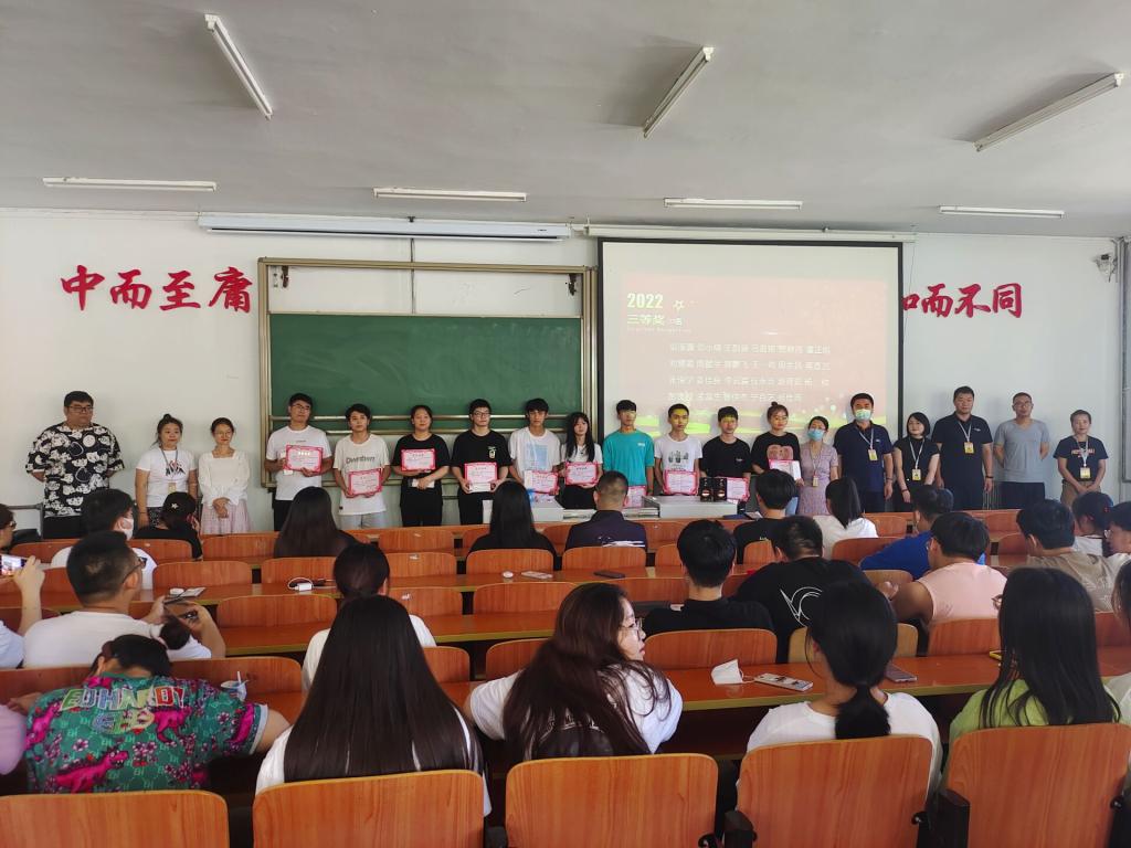 为推进专业实践学期实习,促进学生专业学习和实践能力提升,营造浓厚的科技创新氛围,7月27日下午,计算机科学与技术专业在一号教学区1101阶梯教室召开专业实践技能竞赛颁奖会。信息工程系教学工作副主任李野、计算机科学与技术专业负责人、专业实践学期指导教师、计算机科学与技术专业生涯导师和该专业学生参会,部分师生通过腾讯会议线上同步参加。