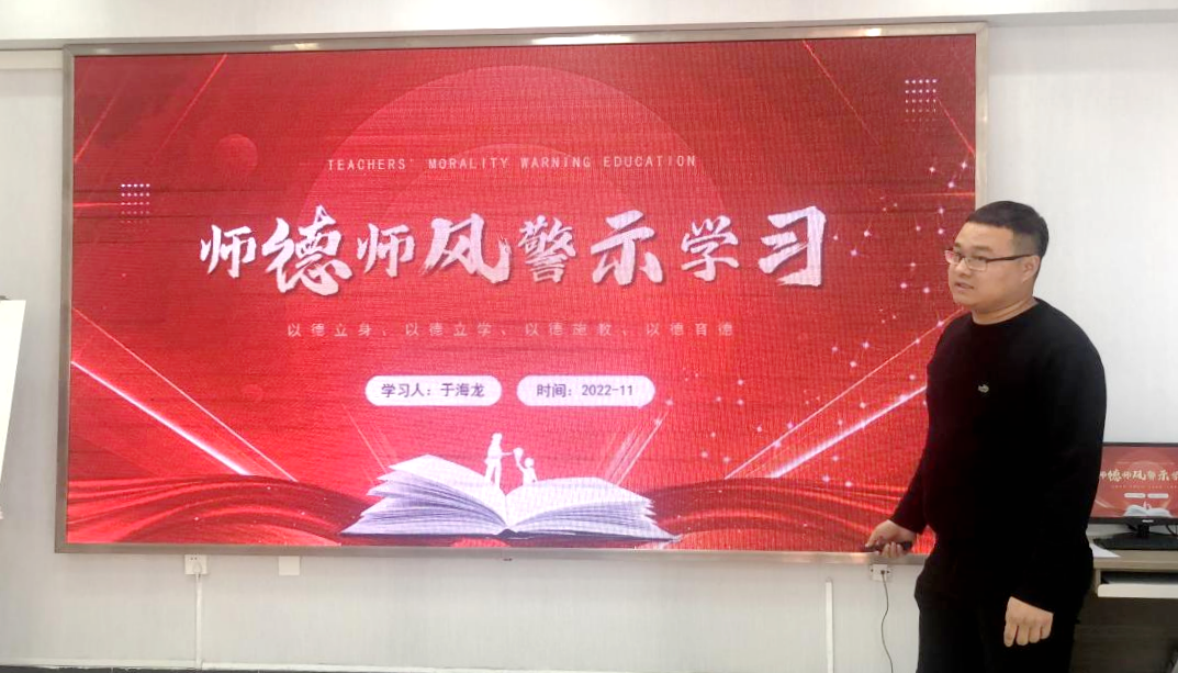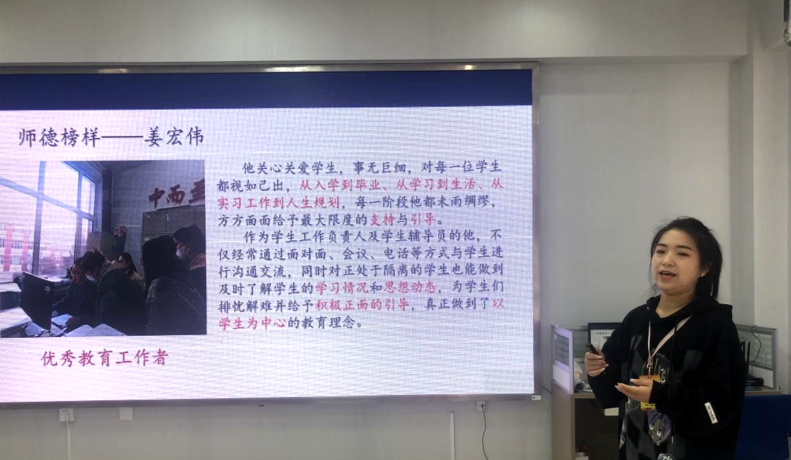 机电工程系辅导员于海龙基于《新时代高校教师职业行为十项准则》,结合学校文化,以案例形式,解读辅导员师德师风内涵。