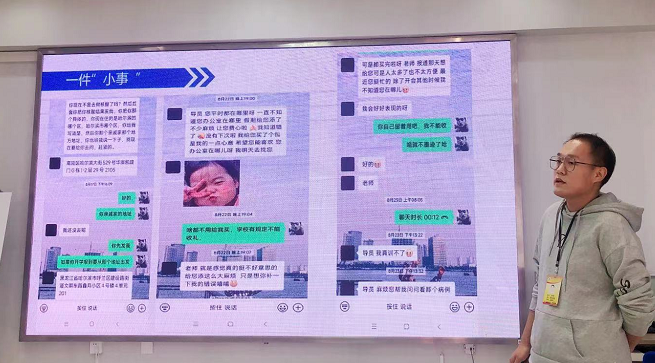 信息工程系辅导员郭磊讲述了家校沟通的故事,分享了建立学生心理档案的做法,说明深入学生,积极与学生互动的意义。