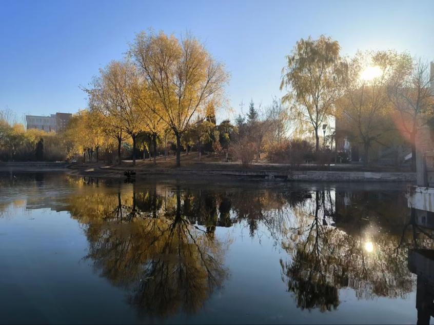 同学们深切感受到了秋日的美好,纷纷举起了手中的相机,无论是倒映在水中树木、建筑的剪影,还是水中锦鲤、略过天空的鸽群,都在“咔嚓”声中留下了美丽的瞬间。