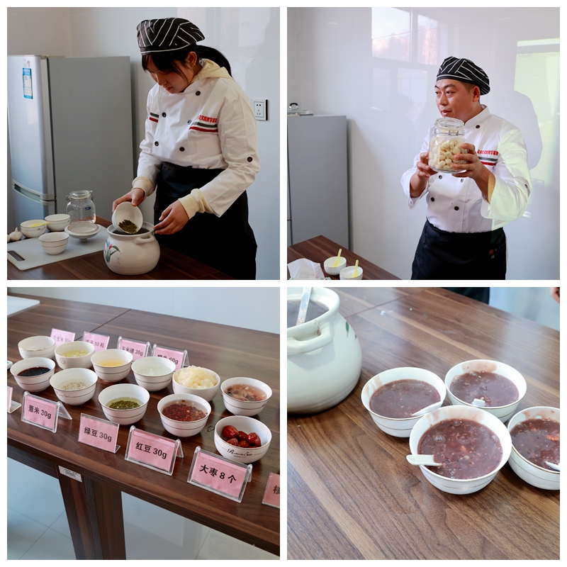 李月明、高晓东分别讲授了腊八粥和腊八蒜的制作方法,并说明做好的腊八粥呈现粘稠状态,香甜可口;腊八蒜则呈现翠绿色,酸甜爽口。另外,两位老师都将课程思政融入教学中,李老师还介绍了腊八节的起源与习俗,以弘扬中华民族传统文化。