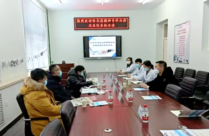 1月10日上午,校党委书记郭伟东、校务会委员蒋春艳及健康与护理系负责人郭玲玲、学生工作负责人姜宏伟、大健康实训中心负责人主任张晓波,专业负责人毕茎娜、孙畅、单大海在一号教学区2104会议室与哈尔滨精神专科白渔泡医院就建设产业学院事宜再次进行商讨。