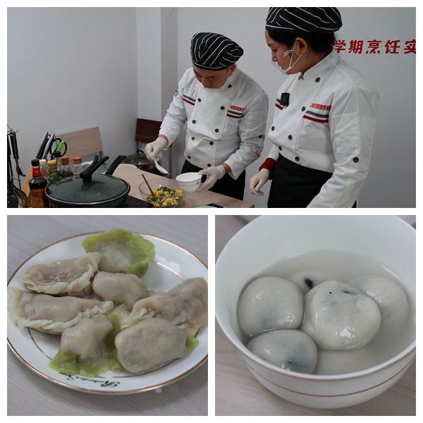 首先,播放了视频,介绍除夕的来历,讲解了饺子的传统意义;随后,考虑到春节南北饮食文化差异,授课老师分别讲授了饺子、汤圆的制作方法。课堂实操中,授课老师演示了韭菜鸡蛋和猪肉白菜馅如何搅拌,并提示了素馅和肉馅在制作过程中的注意事项,还用菠菜汁和面,包出了绿意盈盈的饺子;接着,演示了黑芝麻和花生馅的汤圆制作过程,讲解了用材配比等。
