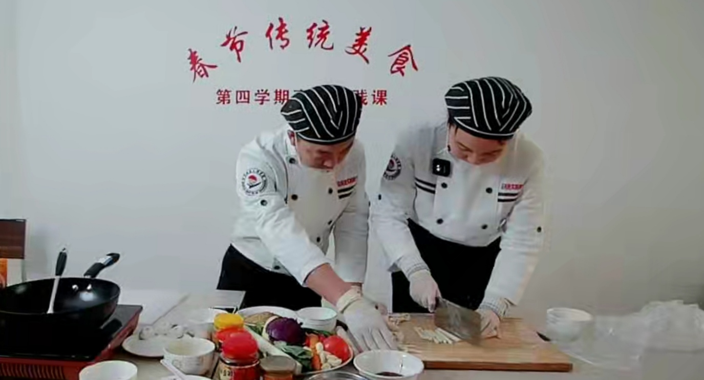 编者按:2022-2023“第四学期”首开的烹饪实践课程——《春节传统美食》,全校报名学生1174人;从1月7日至2月4日,四名教师按“四真三化”(FT)课程开发工作坊的方式线上授课,实操制作腊八粥、拔丝地瓜、可乐鸡翅、饺子、手擀面、炸春卷等十几种美食;同学们提前预习、准备食材,跟随学习16课时。