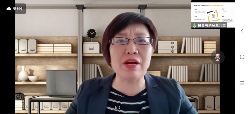 教授通过理论与实践融合的方式,首先从影响课堂活力的四要素(教师、学生、内容、场域)进行深入的分析,符教授将教师成长分为五个阶段,分别是“说教式、表演式、引导式、行动学习式、浸泡式”。她认为打造活力课堂,教师要从“引导式”起步,要以学生为中心,创造积极、开放、公开、信赖、表达的课堂活动场域,既要激发学生探究问题的热情,又要深挖课堂设计的底层逻辑,提升教师的价值理念。