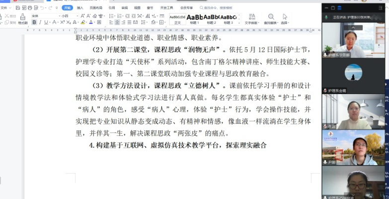 2月19日晚,健康与护理系参加第三届校级教学创新大赛的团队在线进行汇报。所有参赛教师参加,教学副主任张林琳主持。