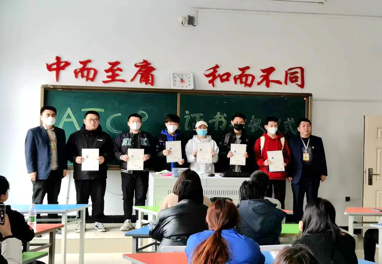随后,胥伟、李士明为学生颁发ATCP证书。