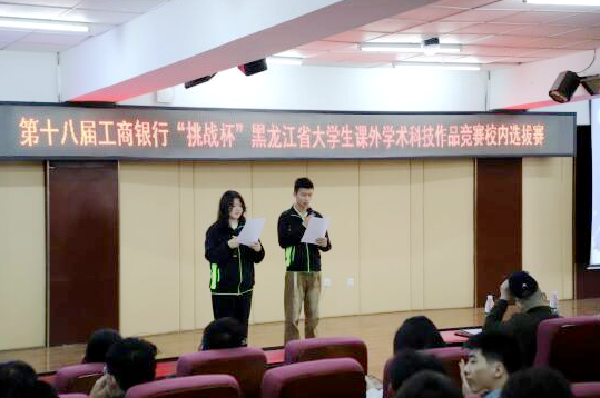 3月27日17时,学校团委在图书馆501汇报厅开展第十八届工商银行“挑战杯”黑龙江省大学生课外学术科技作品竞赛校内选拔赛。由创业学院课程长逯娅娜、创业学院教师李广喆、教务处陈茂松老师及校团委指导教师张云惠担任大赛评委,共25组参赛。辛佳芮和唐剑扬同学主持。