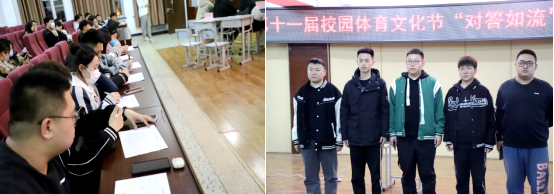 4月3日晚,校学生会在图书馆501会议室开展第十一届校园体育文化节“对答如流”体育知识竞赛活动。各系学生会主席担任评委,80余名学生参加。