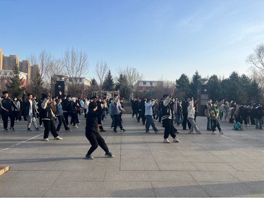 4月4日早,健康与护理系健康服务与管理专业在早操中练习打太极拳。健管专业专业长毕茎娜、生涯导师韩淑梅指导,2020、2021、2022级的百余名学生参加。