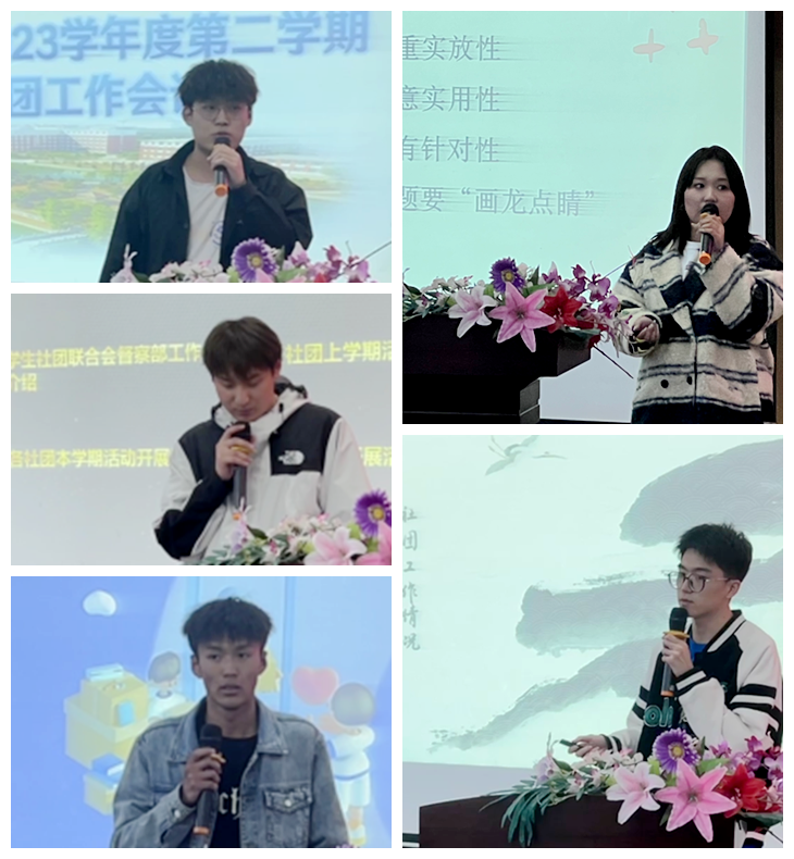 社团联合会五位部长依次上台对各社团提出改进意见。