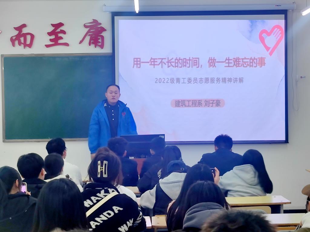 4月20日,由校团委主办、建筑工程系承办的第25期团校培训活动——“青工委员培训启动仪式暨青工委员培训”在二号教学区2511室举行。管理工程系团总支书记王丽伟、建筑工程系学生会指导教师刘子豪、建筑工程系团总支副书记王子杨以及2022级全体青工委员参加,建筑工程系团总支书记宋雪微主持。