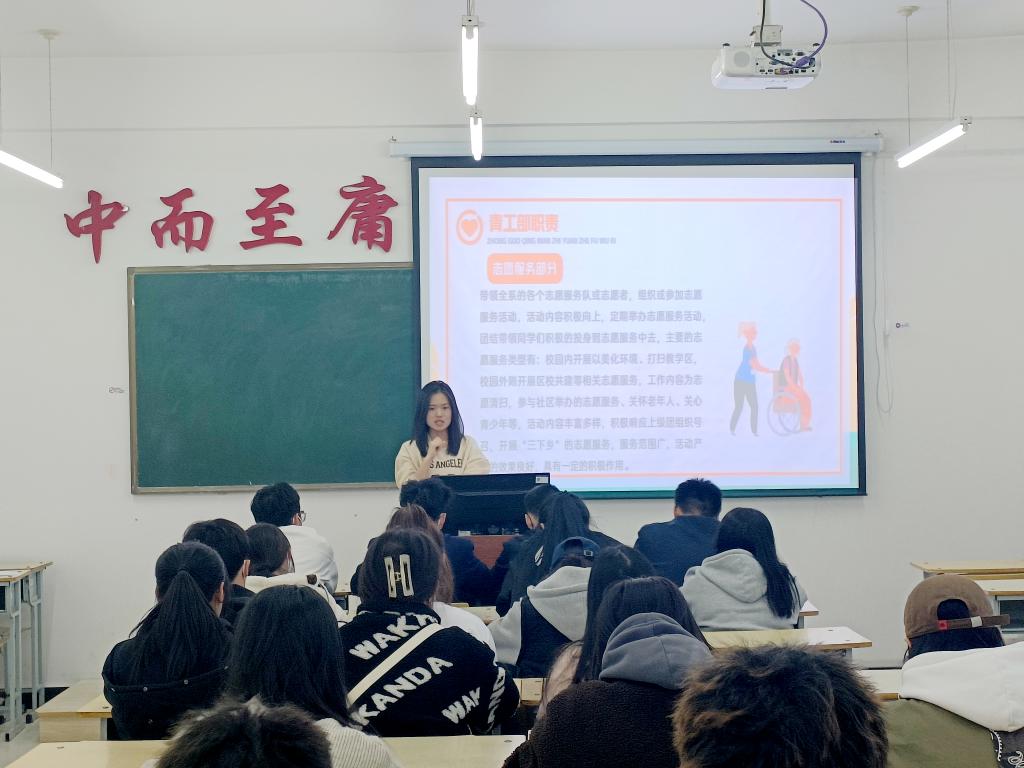 宋雪微首先介绍了此次培训目的和意义,随后,青工部的职责以及如何成为一名大学生志愿者等方面进行了系统讲解,并强调团干部应端正自己的态度,明确责任,提升素质,争做新时代优秀的团干部。
