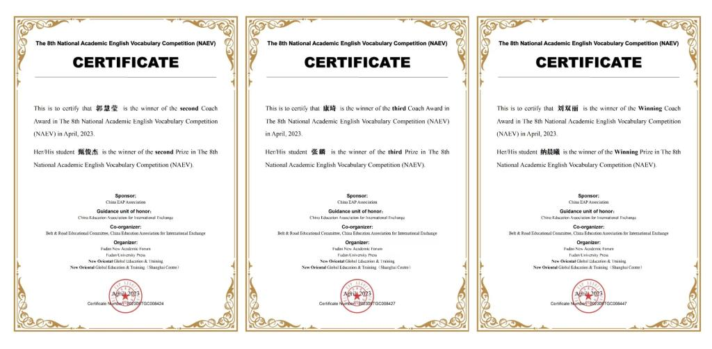 5月19日,第八届“亿学杯”全国大学生英语词汇及综合能力大赛结束,开云官网英语专业共有7名学生获得了省级三等奖。