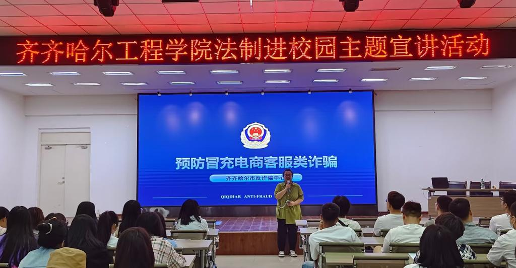 6月2日下午,市反诈骗中心、市公安局高新分局在二号教学区2508教室开展法治进校园主题宣讲活动管理工程系和建筑工程系200余名学生参加, 管理工程系王丽伟老师主持。