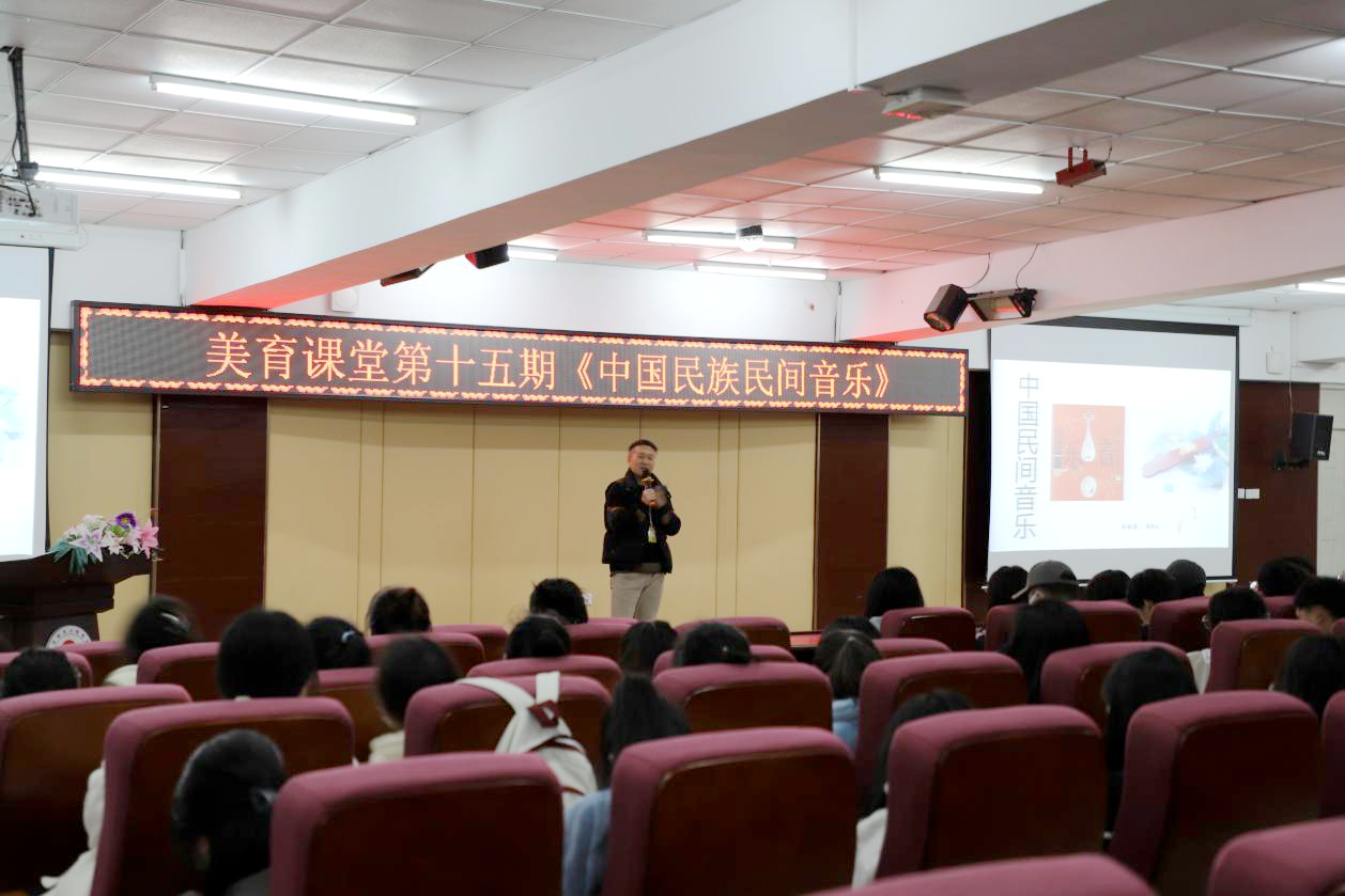 4月19日下午18时,校基础部梁佟心在图书馆501报告厅开展以“中国民族民间音乐”为主题的第十五期美育课堂。梁老师深入浅出地让学生了解历史与音乐的关系,如高山流水遇知音等典故。