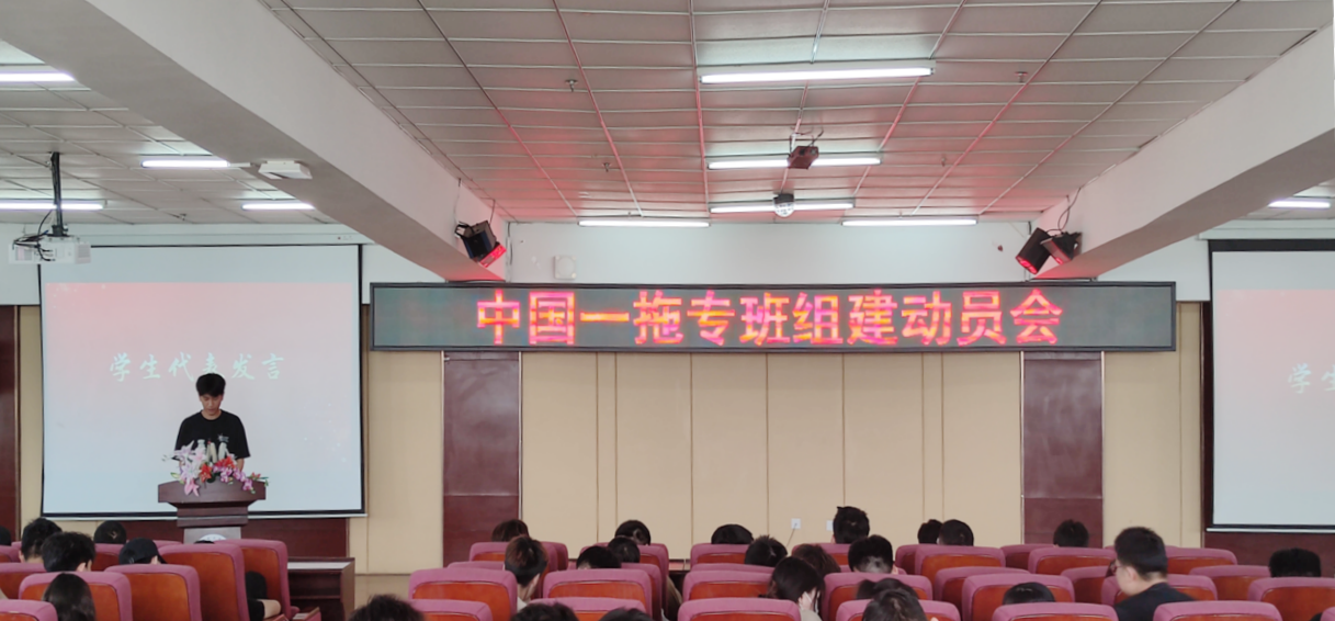 车辆202班苑向阳作为学生代表发言,讲述了自己在中国一拖的实习经历,以所见所感,鼓励同学们积极参加专班,并对学校提供的这次机会表示感谢,自己已经第一时间报名加入专班。