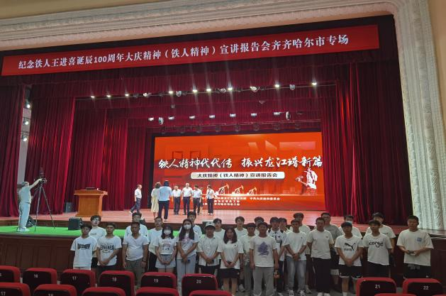 6月30日,机电工程系在齐重数控装备股份有限公司实习的学生受企业邀请而赴工人文化宫,同企业员工一起参加“纪念铁人王进喜诞辰100周年铁人精神大会”。