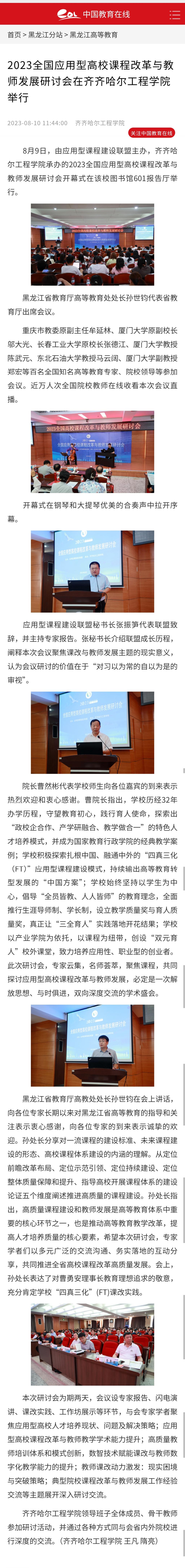 中国教育在线:2023全国应用型高校课程改革与教师发展研讨会在开云kaiyun官方网站举行
