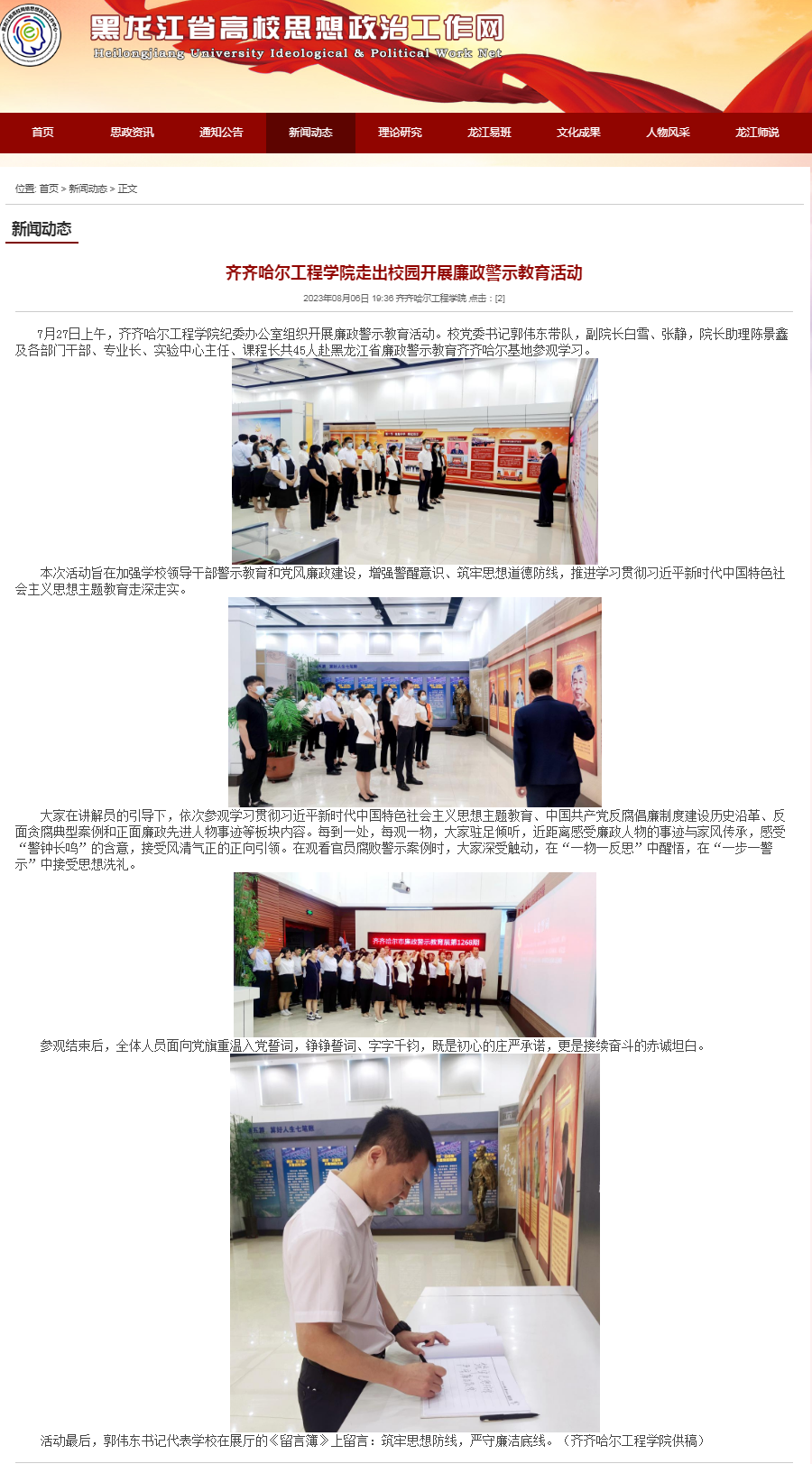 黑龙江省高校思想政治工作网:开云kaiyun官方网站走出校园开展廉政警示教育活动