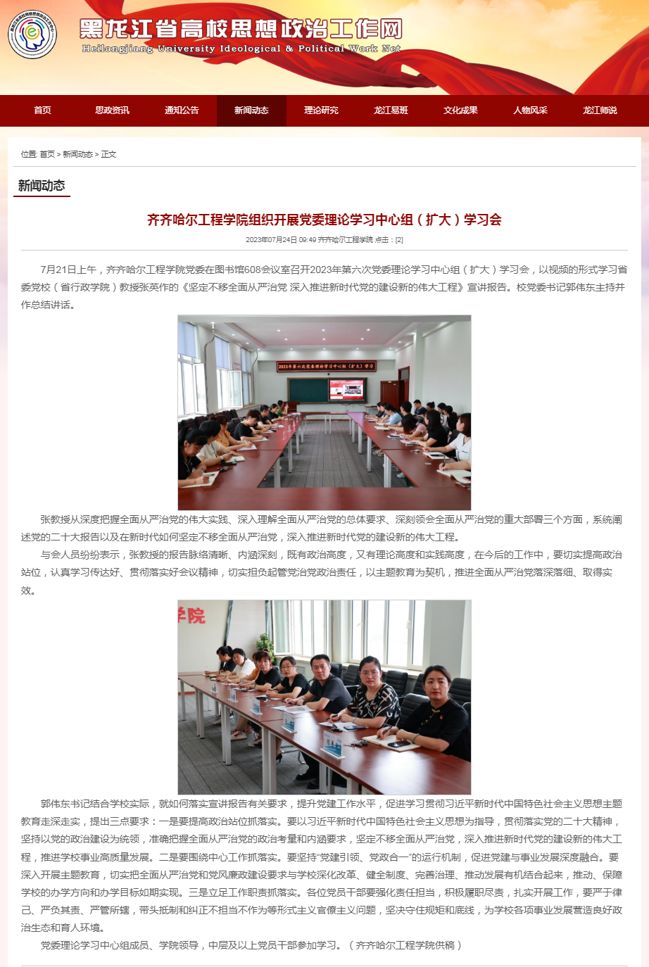 黑龙江省高校思想政治工作网:开云kaiyun官方网站组织召开党委理论学习中心组(扩大)学习会