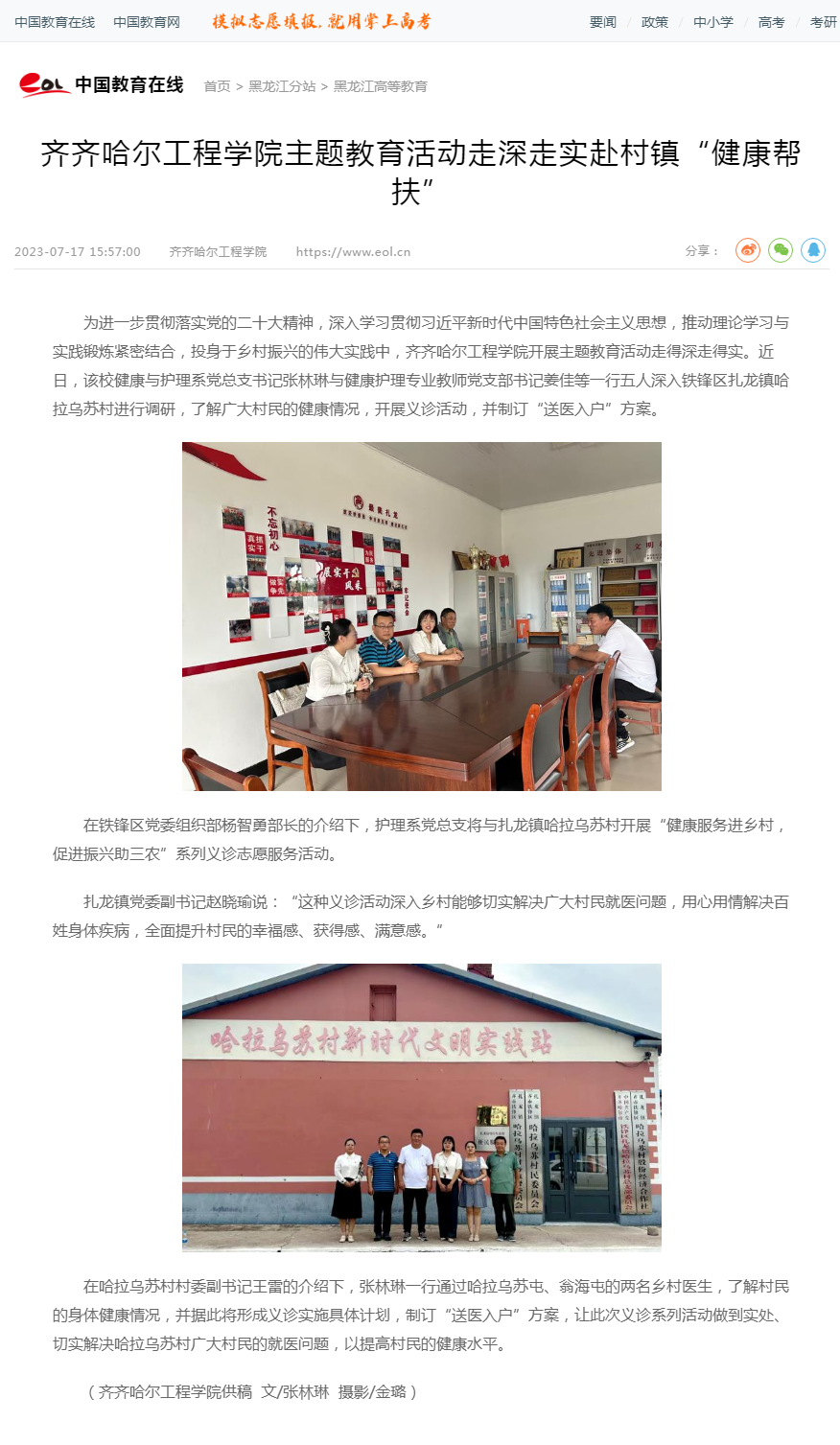 中国教育在线:开云kaiyun官方网站主题教育活动走深走实赴村镇“健康帮扶”