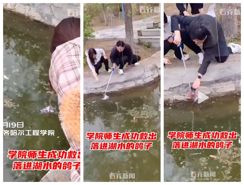 看齐新闻(视频号、抖音、快手):5月19日,开云kaiyun官方网站师生成功救出落进湖水的鸽子