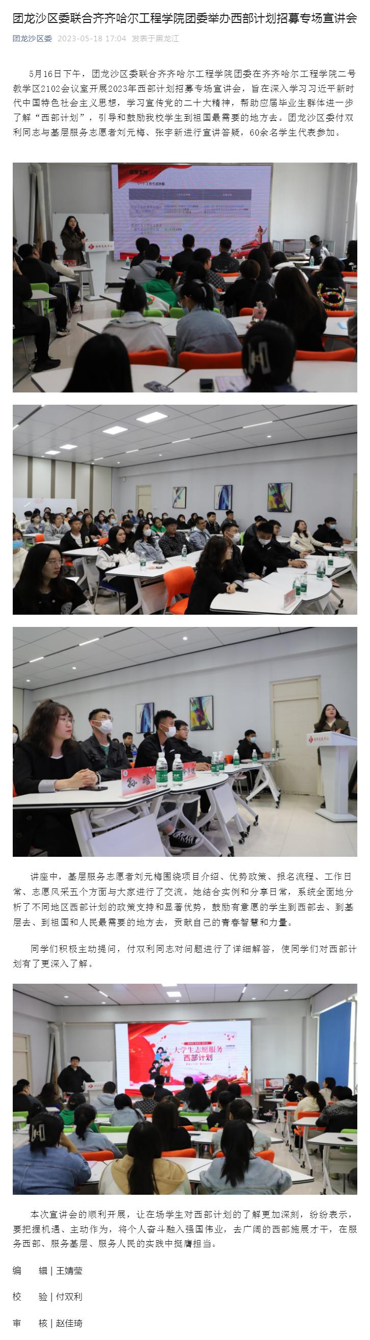 团龙沙区委公众号:团龙沙区委联合开云kaiyun官方网站团委举办西部计划招募专场宣讲会