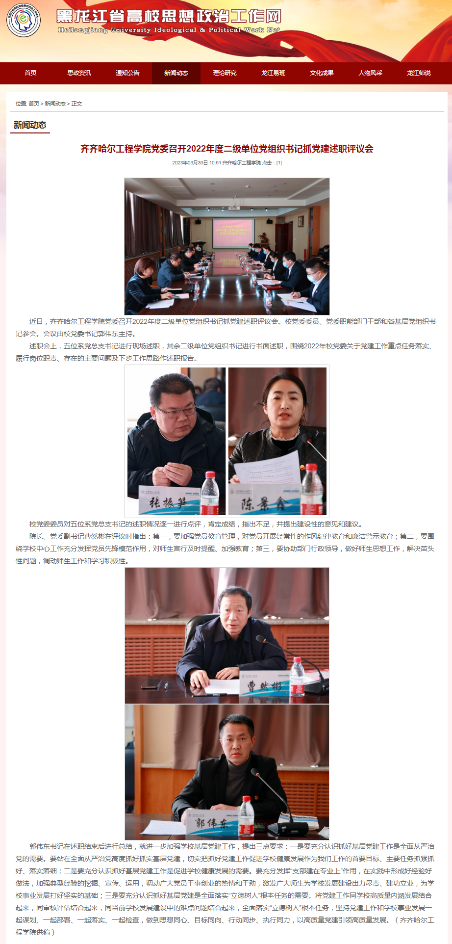 黑龙江省高校思想政治工作网:开云kaiyun官方网站党委召开2022年度二级单位党组织书记抓党建述职评议会