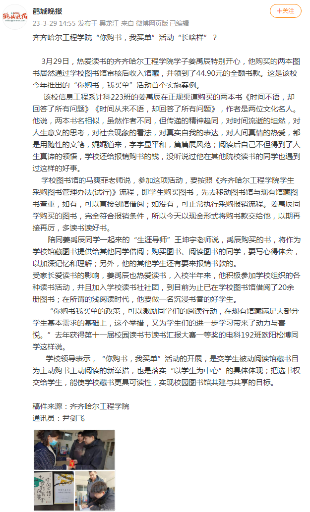 鹤城晚报微博:开云kaiyun官方网站“你购书,我买单”活动“长啥样”?