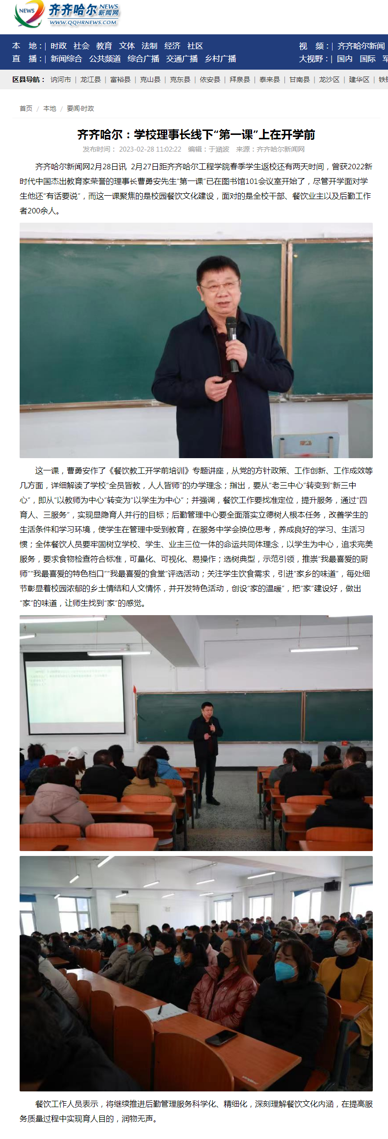 齐齐哈尔新闻网:齐齐哈尔:学校理事长线下“第一课”上在开学前