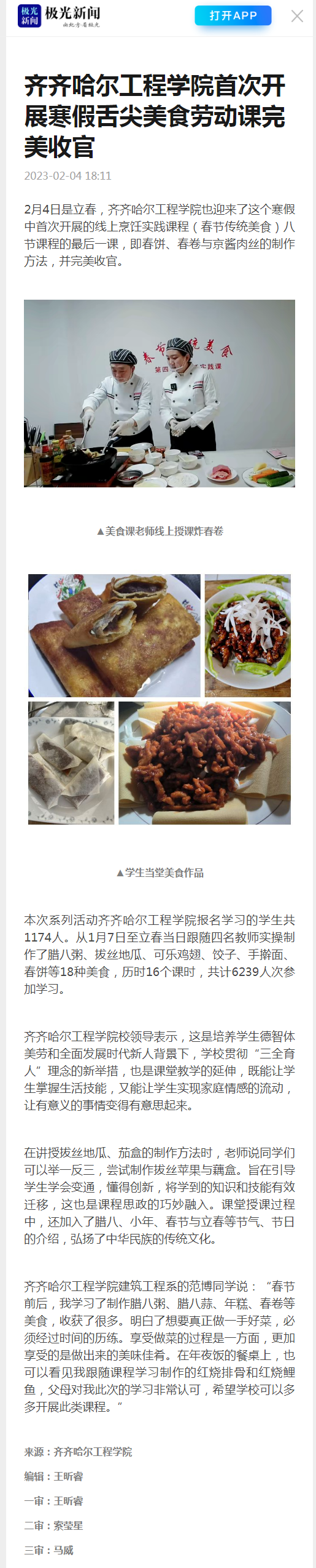 极光新闻:开云kaiyun官方网站首次开展寒假舌尖美食劳动课完美收官