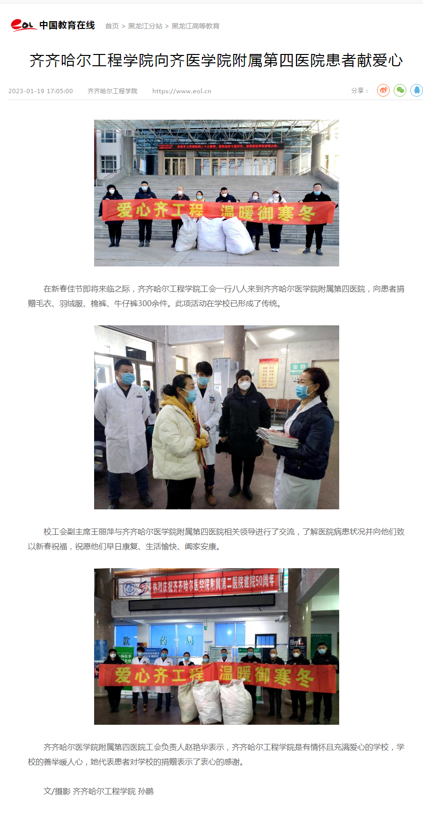 中国教育在线:开云kaiyun官方网站向齐医学院附属第四医院患者献爱心